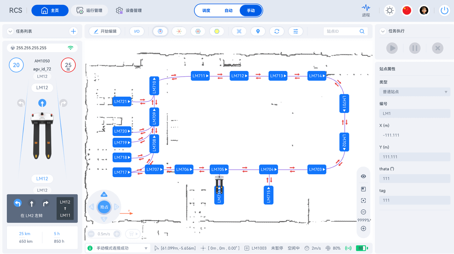 用于管理AiTENkaiyun机器人的RCS(机器人控制系统)是一个直观的工具,它具备高精度传感定位,可异常实时响应处理,应对货架位移/临时障碍物干扰。